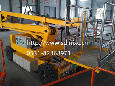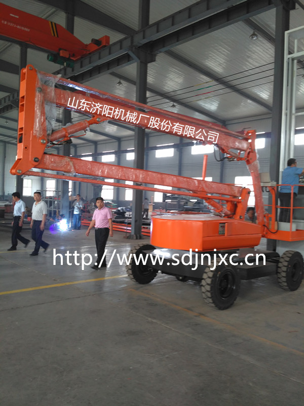 自行式折臂升降機,利用柴油機為動力,加電瓶采用電啟動,適用于野外及無電源場所作業(yè),自支腿、自升降、自行走,360°旋轉(zhuǎn)作業(yè)。本產(chǎn)品具有操作簡單,使用方便,作業(yè)面大,特別是能夠懸伸作業(yè),跨越一定的障礙物或在一處升降,可進行大范圍多點升降作業(yè)的特點,極大地提高了工作效率。該系列高空作業(yè)平臺車廣泛用于市政、電力、路燈、公路、碼頭、廣告、園林、小區(qū)物業(yè)、廠礦企業(yè)車間等行業(yè)范圍升降作業(yè)。上升,下降,旋轉(zhuǎn)(360度)、探出等操作,易于跨越障礙到達工作位置,在不同情況下快,慢行走(前進,后退,轉(zhuǎn)方向)。